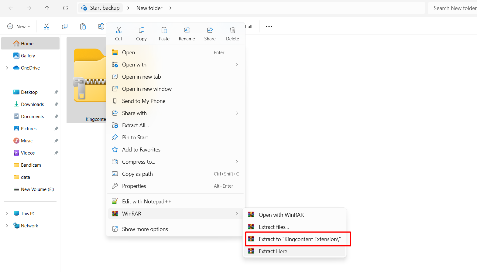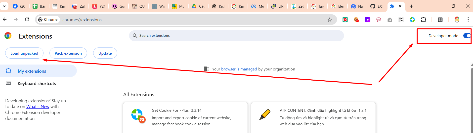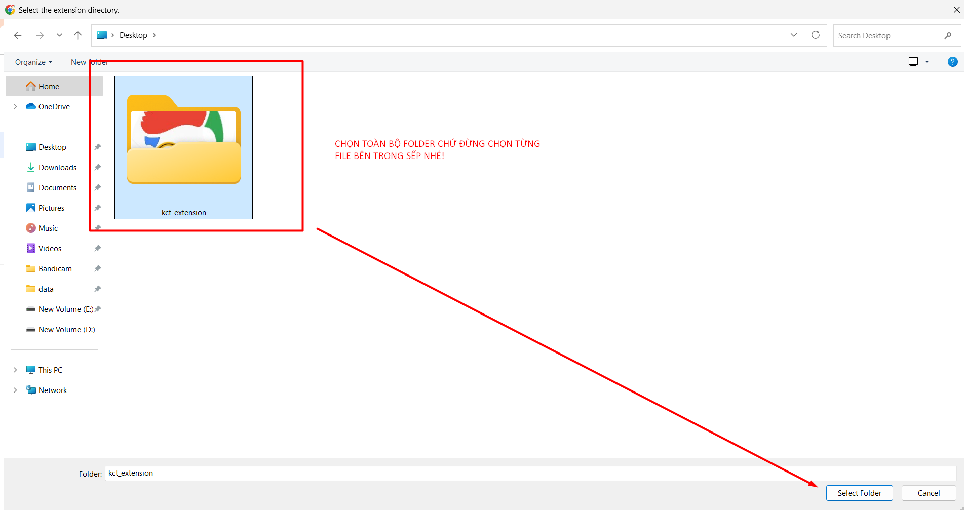 Bật chế độ NHÀ PHÁT TRIỂN rồi chọn cả Folder Kingcontent Extension