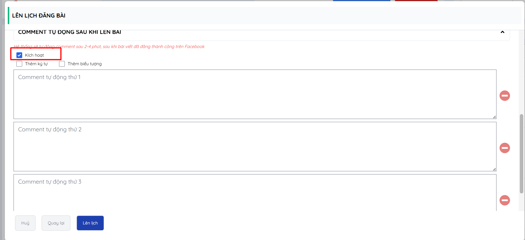 Bước 3: Tự động comment để chuyển đổi traffic bên dưới